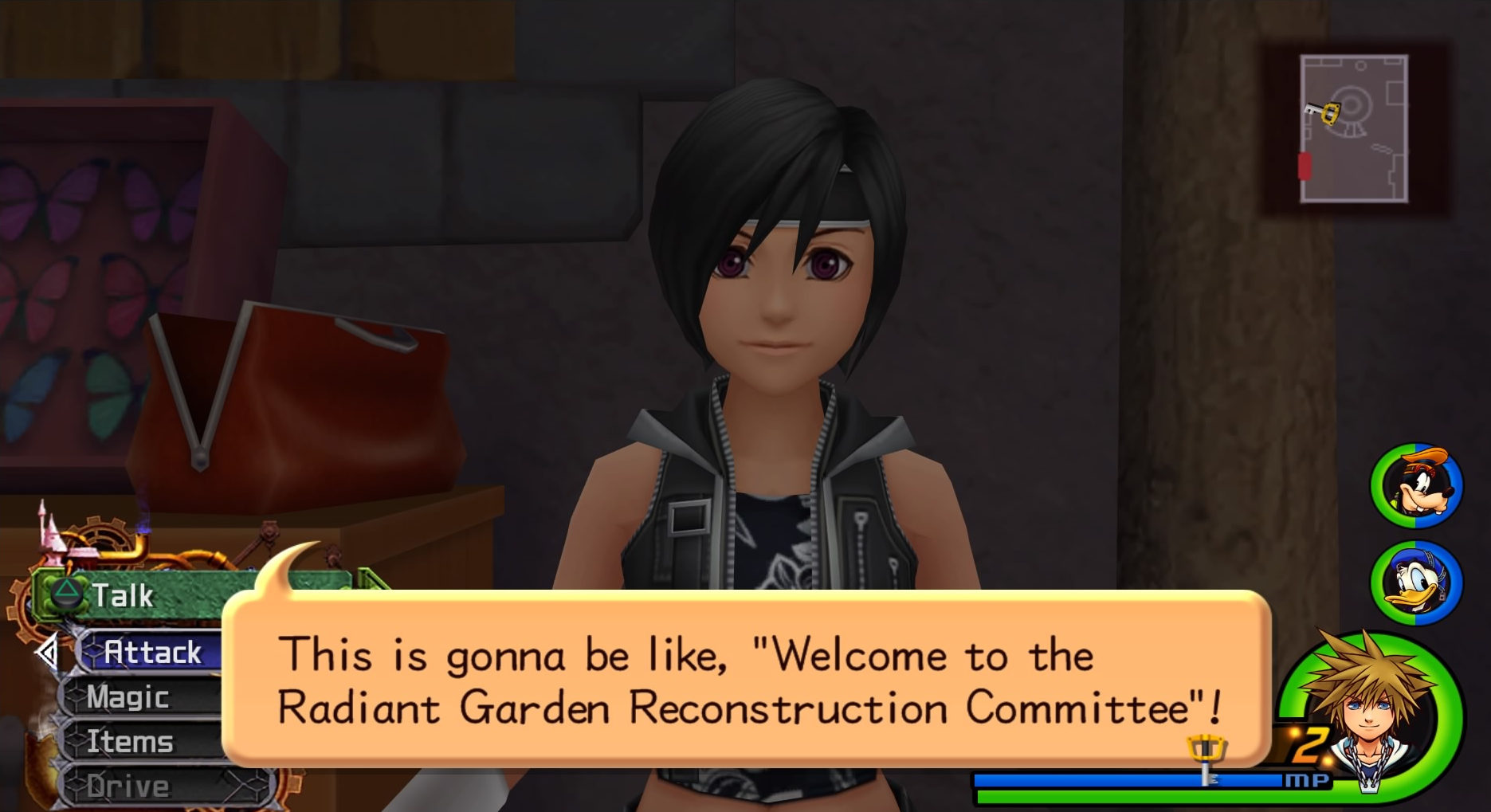 | Description | Yuffie tells Sora and co. the Hollow Bastion Restoration Committee's new name. |