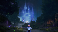 | Riku visits Leon, Cid, Yuffie and Aerith at Radiant Garden to see if they had made any progress. It turns out that Cid has managed to recreate the data of the Real Organization XIII, but they're far too powerful to access. The only way to do so is to have a data copy of Sora engage them all in one-on-one combat. Upon completion, however, all they get is an inconclusive analysis: they're back to square one. The Fairy Godmother appears at Yen Sid and Merlin's request – they believe that Riku's dreams may hold the key. Riku recalls that he has been having that one particular recurring dream, and begins to recount it. | ||