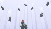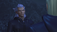 | Meanwhile, Lea, Aeleus, and Ienzo find themselves wide awake in Ansem's computer room at Radiant Garden, while Dilan and Even are still unconcious and recovering from their ordeals. The Nobodies of all of the Organization members had been slain, precipitating their resurrections as humans. Lea and Ienzo quickly take notice that Isa and Braig are nowhere to be found. | ||