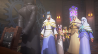 | The Foretellers discover a traitor in their midst, signaled by the appearance of a Nightmare Chirithy. Due to the loss of a security blanket in the Master's guidance, as well as their own ineptitude in carrying out their roles, they begin to suspect one another of treason. Their squabbling eventually turns into all-out battles between the Unions, all but ensuring the coming of the prophesied Keyblade War, just as the Master intended. | ||