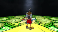 | Mickey fights Luxord, Larxene, and Marluxia, with Xemnas watching. When Sora joins the battle, Xemnas leaves, but not before powering up Luxord. The Gambler of Fate seals Mickey in a card and challenges Sora to one last game. Luxord is defeated, and he hands Sora a wild card that could help turn the tables, agreeing to play together again once everything is over. Together, Sora and Mickey defeat Larxene, who admits that she only rejoined the Organization to tag along with someone, and Marluxia, who thanks Sora for helping him begin to uncover the mysteries of his past. | ||