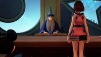 | Back at Yen Sid's tower, Lea agrees to undertake some sort of trial of his own. Yen Sid ponders just what Xehanort's true intentions are, though he assures that Xehanort cannot interfere with the exam; since Sora and Riku never met Xehanort before the start of their journey, he would have no point of entry into their journey in the dream world. To his horror, Yen Sid realizes that they did meet him: Xehanort's formless heart appeared to them at the Secret Place on the Destiny Islands. He quickly realizes that Xehanort has used this event as his anchorpoint to travel to the past, and he has secretly been guiding and manipulating their exam from the very beginning. | ||