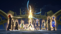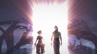| Ephemer and Skuld return to the real world just in time to see it engulfed in darkness. They return to their pods and teleport to the future. Ephemer, Skuld, Ventus, Lauriam, and Elrena are flung into different points in time. | ||