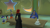 | King Mickey drops a major bombshell on everyone: the man they had defeated at End of the World wasn't Ansem at all! He was in fact his apprentice, Xehanort – or, more aptly, Xehanort's Heartless – who had taken his master's name and work shortly after banishing him. Some time later, he had turned himself and the rest of the apprentices into Nobodies, thus creating the Organization. Xehanort's Nobody, Xemnas, is now the leader of Organization XIII. | ||