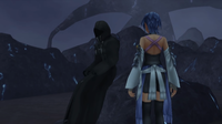 | One day, believing that the newborn Xehanort was the fabled "Child of Destiny", the blue cloaked figure takes him to Destiny Islands for safety, watching as Xehanort grows up. As Xehanort grows up, he starts having dreams of Player's adventures and their experience in the Keyblade War; these memories resided in the heart of his caretaker, who Xehanort formed a connection with due to the excptional strength of his heart. Eventually, the cloaked figure passes away, their task complete. | ||