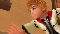 | DiZ digitizes Roxas into a simulated copy of Twilight Town, his memories and personality replaced with a new one to throw the Organization off his scent. As Roxas wakes up in his bedroom, he excitedly runs outside as summer vacation is coming to a close, wondering if he and his friends will finally visit the beach today. | ||