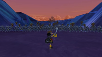 | A strange portal opens in Disney Castle. Sora and the gang pass through it and find themselves in the middle of a dusty badland - the Keyblade Graveyard. There, they encounter the Lingering Will. The Will senses the power in Sora, but confuses him for Xehanort and attacks in a blind rage. Despite the nearly insurmountable odds of facing against the Will's strength, Sora manages to claim victory. The Will however claims it has nothing to give Sora but its sheer hatred for Xehanort, and returns to its rest. | ||