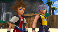 | With the Kingdom Key in hand, Riku opens a keyhole that transports him to the shores of the Islands. There, he must answer three questions posed by visions of Roxas, Ventus and Xion. Upon answering the questions, he is met by a vision of Ansem the Wise. The Sage-King reveals that as part of his atonement, he hid the results of his research deep inside Sora's memories during Sora's recovery from Naminé's tampering. He assures Riky that Sora is already awake; he need only leave and see for himself. | ||